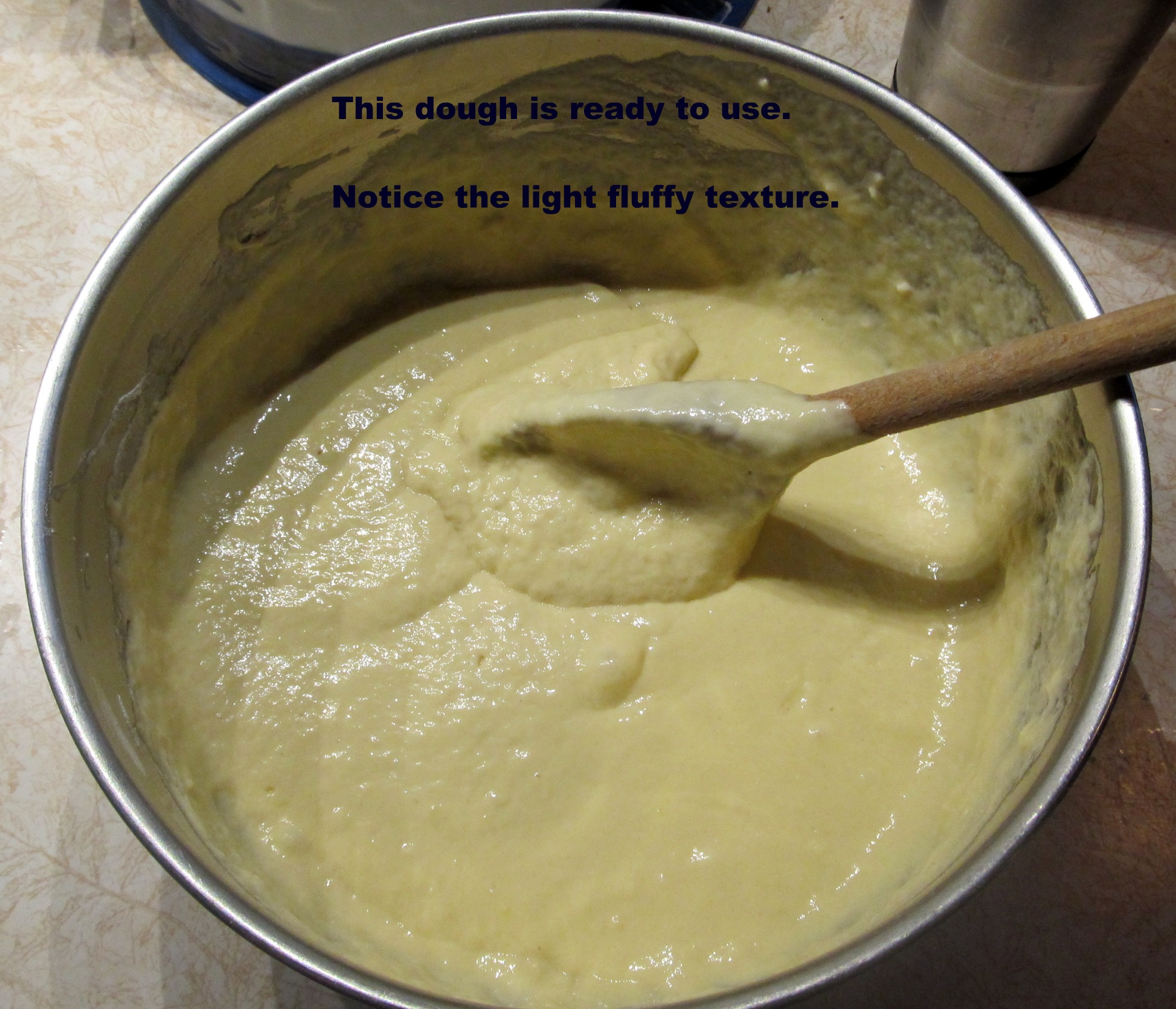 Mix all ingredients at once in mixing bowl until batter is smooth. Beat for a few minutes extra to lighten the batter and help it rise.