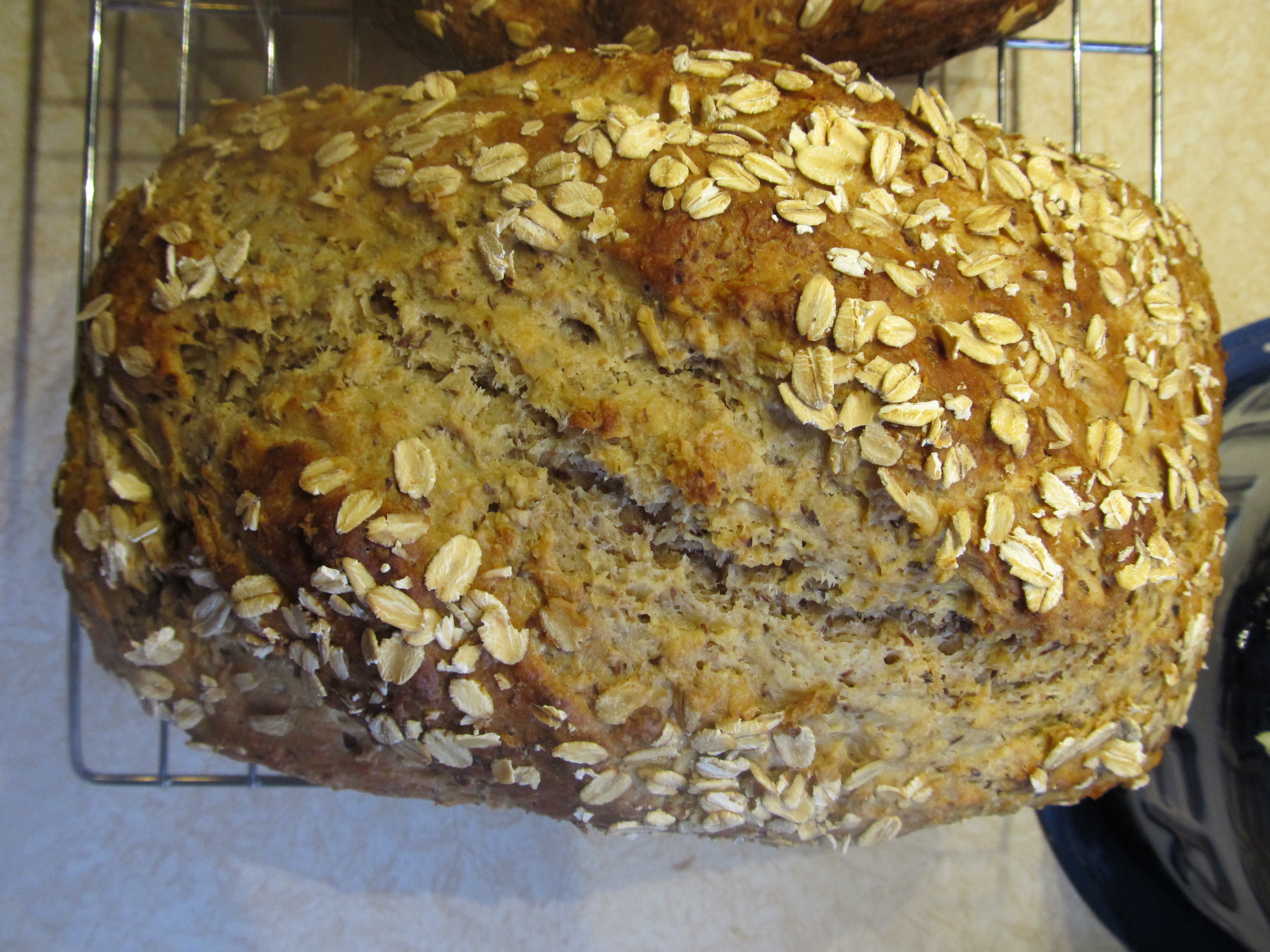 Oatmeal loafImagine yourself serving your family warm, fresh-made bread every day or perhaps for special dinner guests.  It’s easy to accomplish in minutes and everyone will think you spent hours slaving to make a gourmet item just for them!
