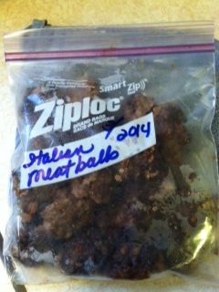A Food Saver vacuum sealer is worth the investment, in my opinion, if you freeze much produce or meat. Items stay perfect in the freezer without freezer burn for months, unlike traditional freezer zip-lock bags. As you can see however, I do use zip-lock bags for items I know will be used within a few months time. Cool the meatballs before placing in the freezer to reduce the energy needed to freeze them.