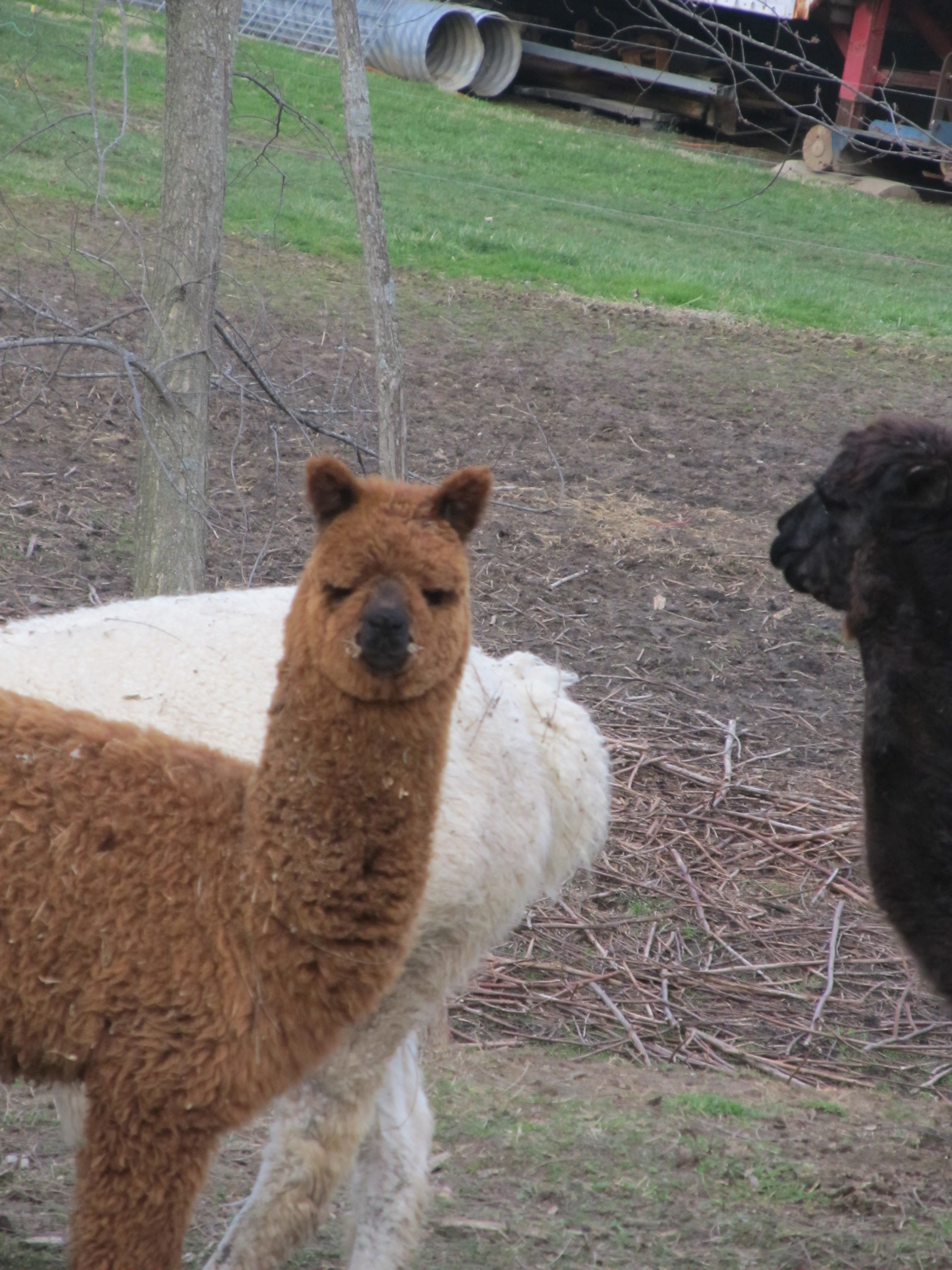 This winter, we decided we needed additional alpacas in order to have enough fiber to process annually. We purchased 5 beautiful females and 1 beautiful grey male. I am excited to announce we will have our first crop of fiber available for sale in June. We will offer sport weight yarn, rug yarn, and felt pads. Last fall we experienced our first cria (the term for alpaca baby) birth and are proud to introduce Sophie.