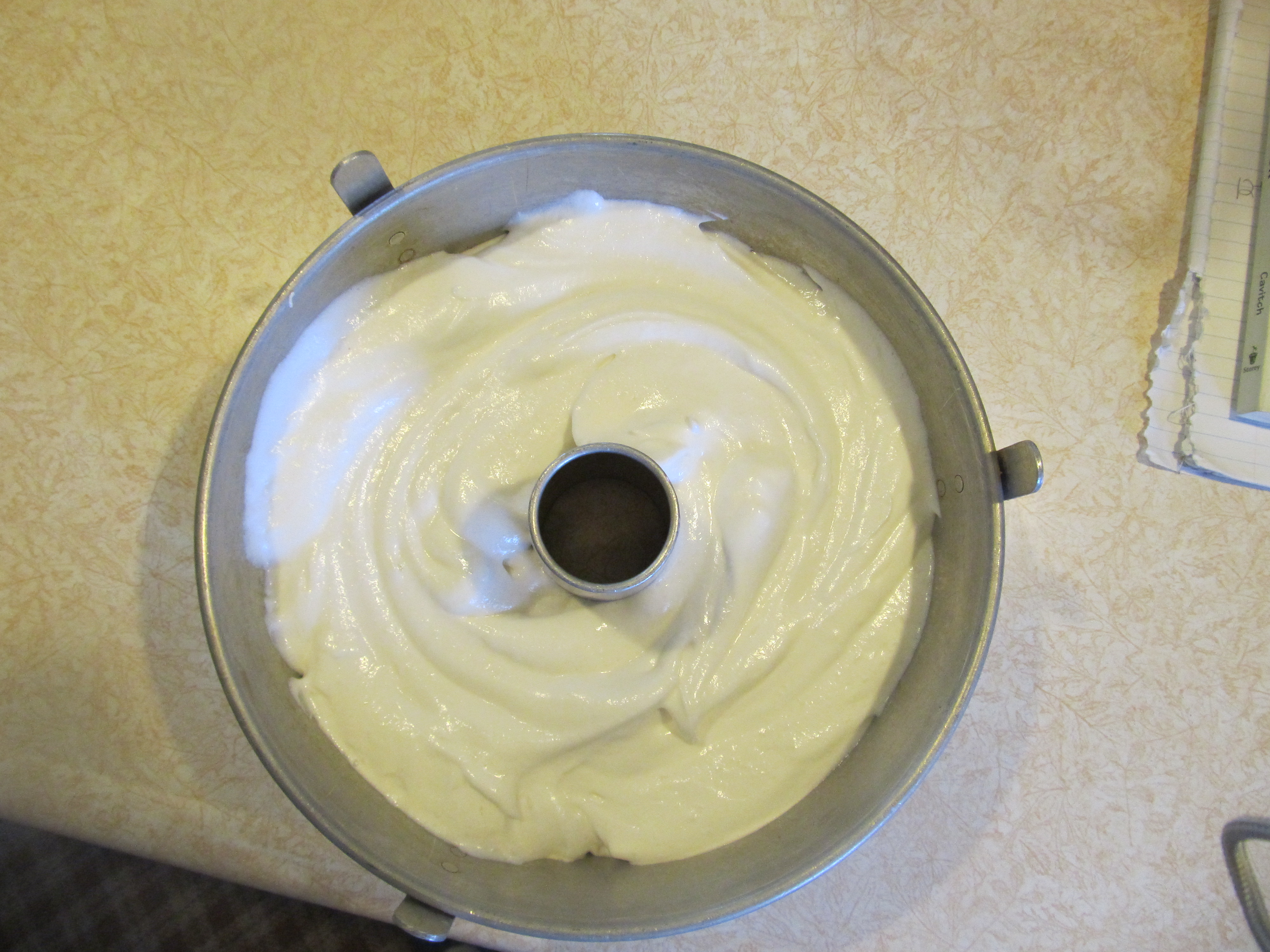 The best Angel Food Cake pan has two parts so the cake can be removed easily from the pan. The center tube and bottom are a separate piece that can be removed from the sides. This was my Mother’s pan and I treasure using it!